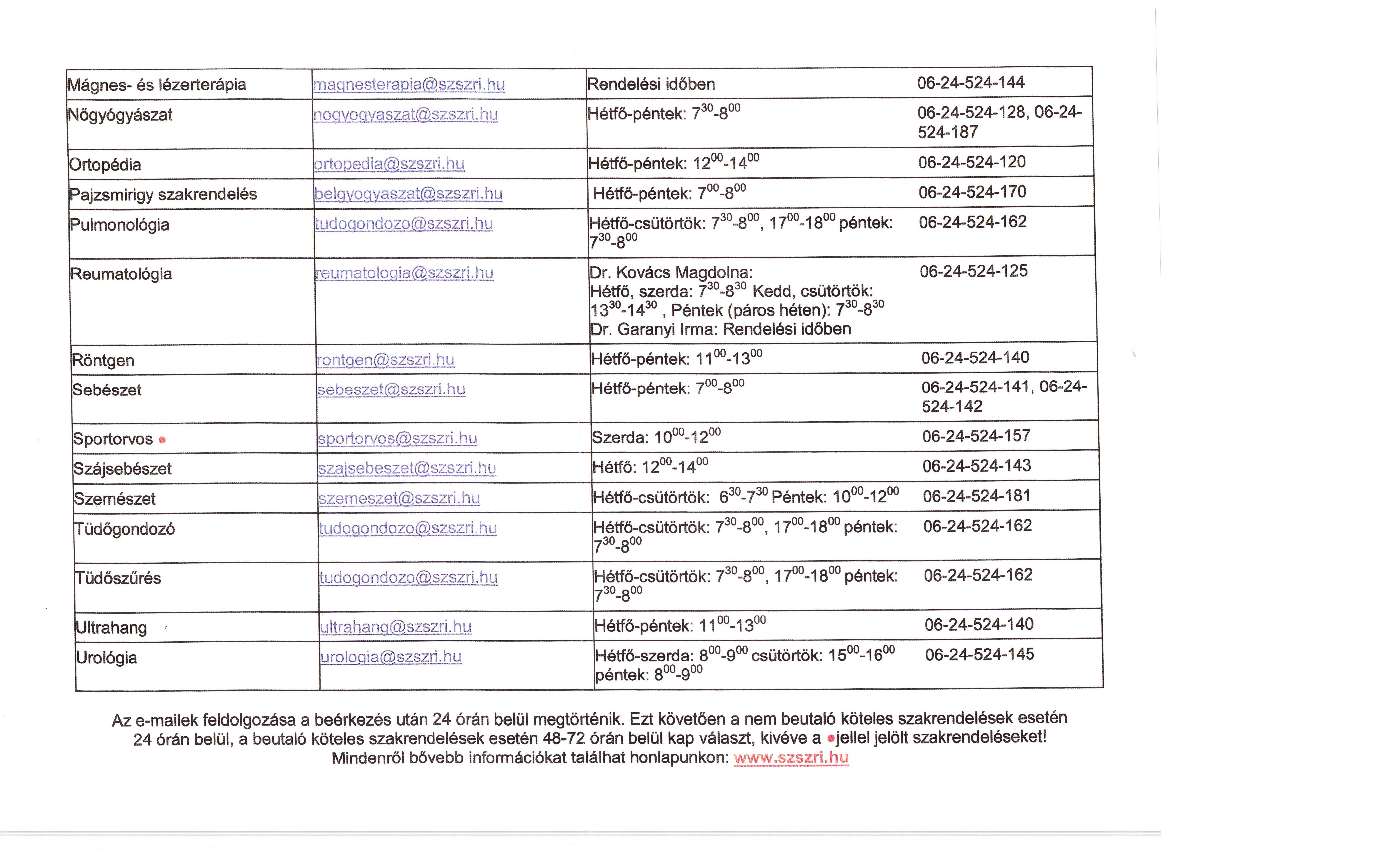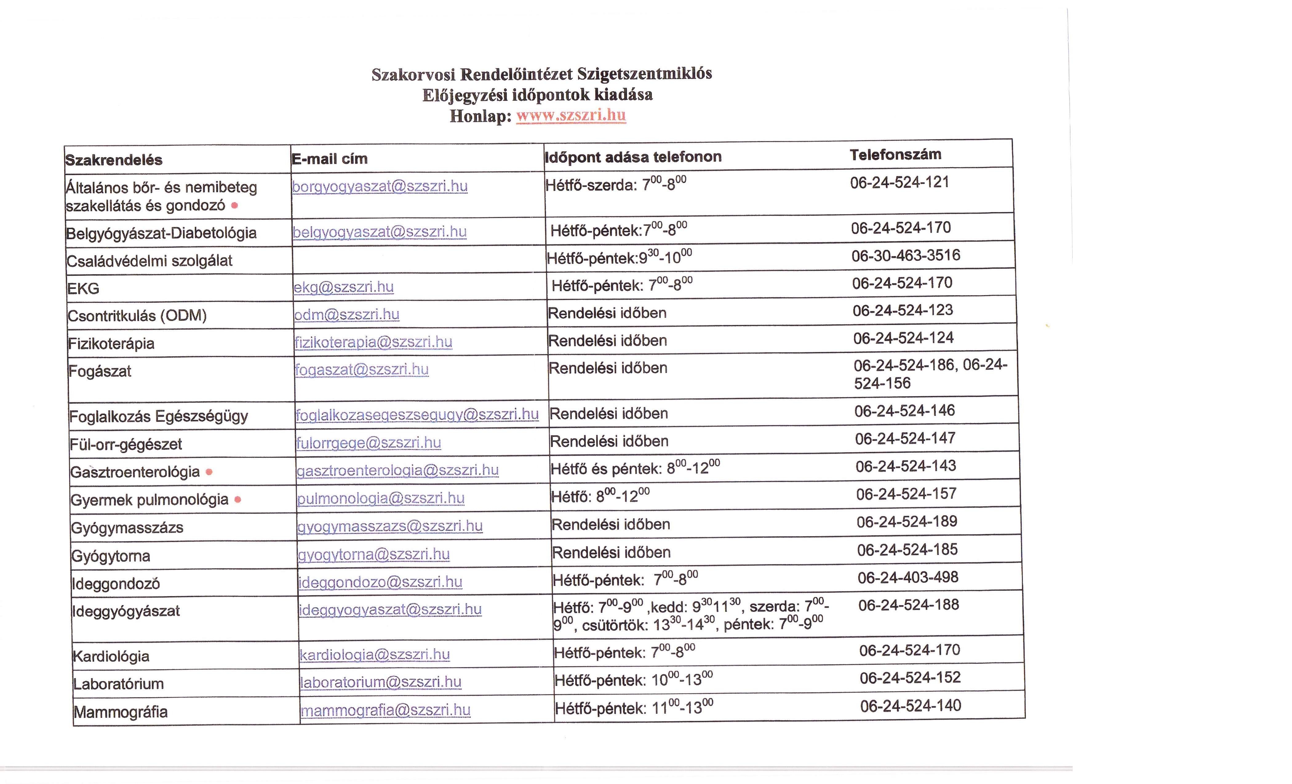 Szakorvosi Rendelőintézet - elérhetőségek