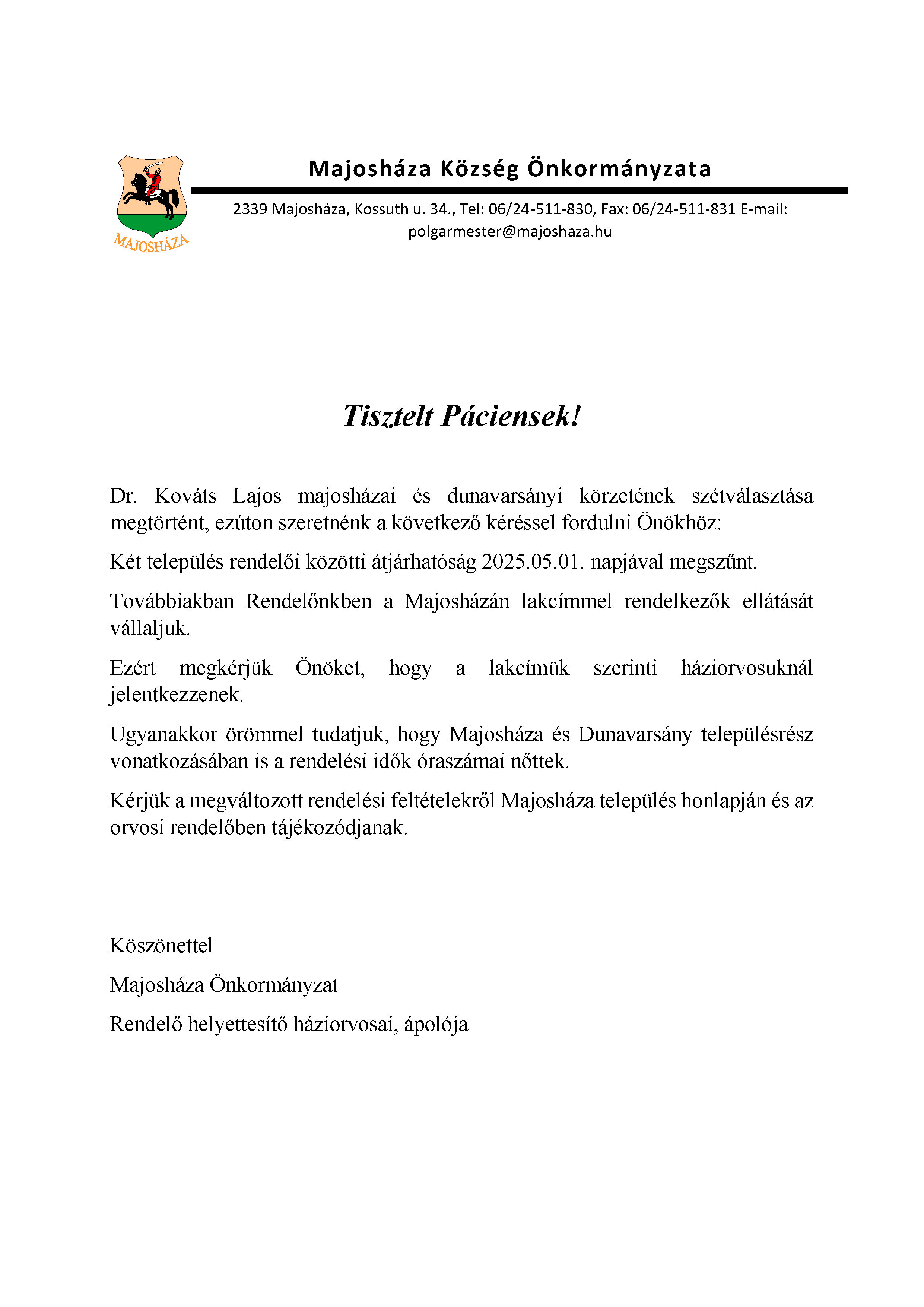 Háziorvosi tájékoztató - 2025.05.22.