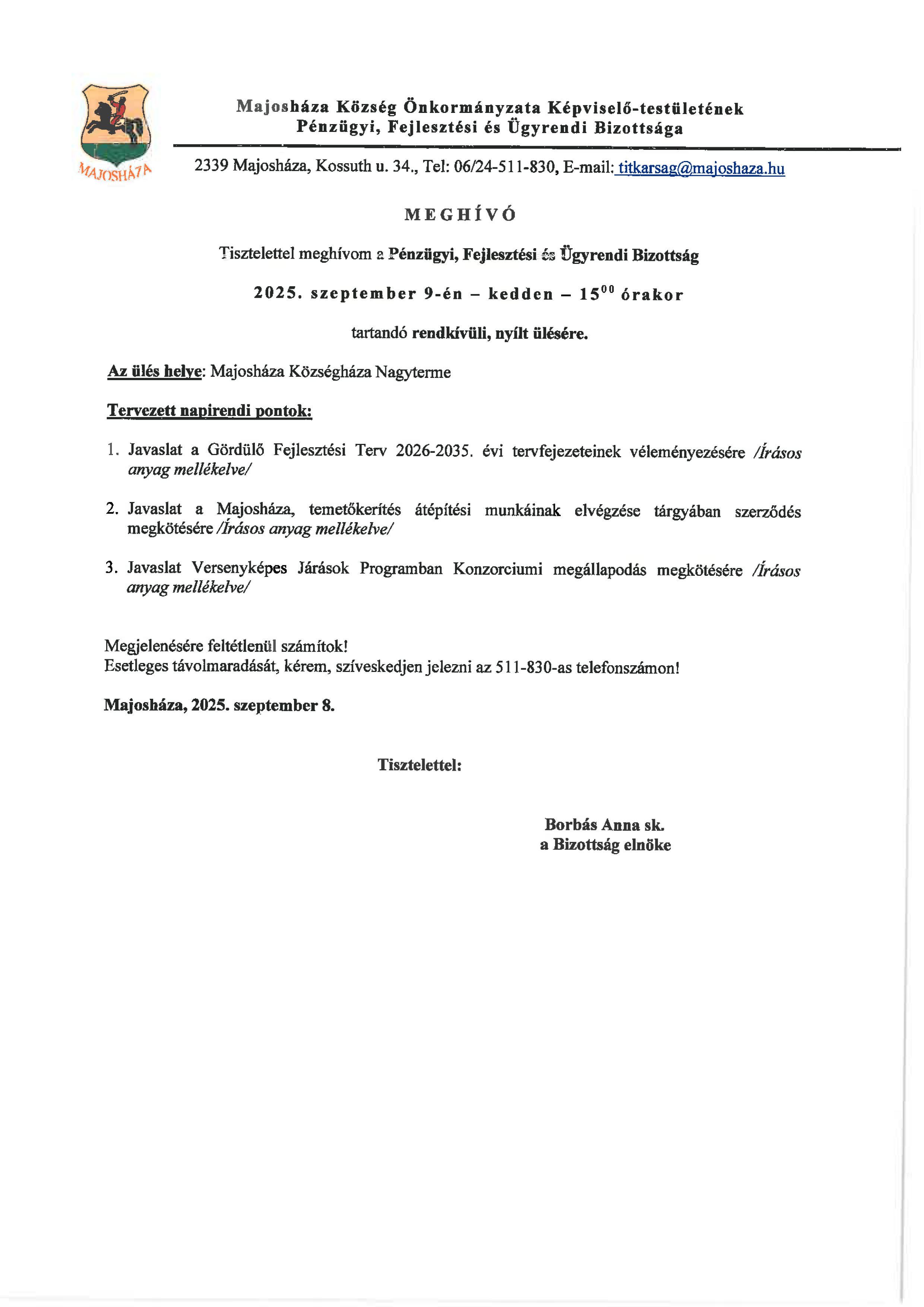 Pénzügyi, Fejlesztési és Ügyrendi Bizottság és Humánpolitikai Bizottsági együttes ülés - 2025.09.09.