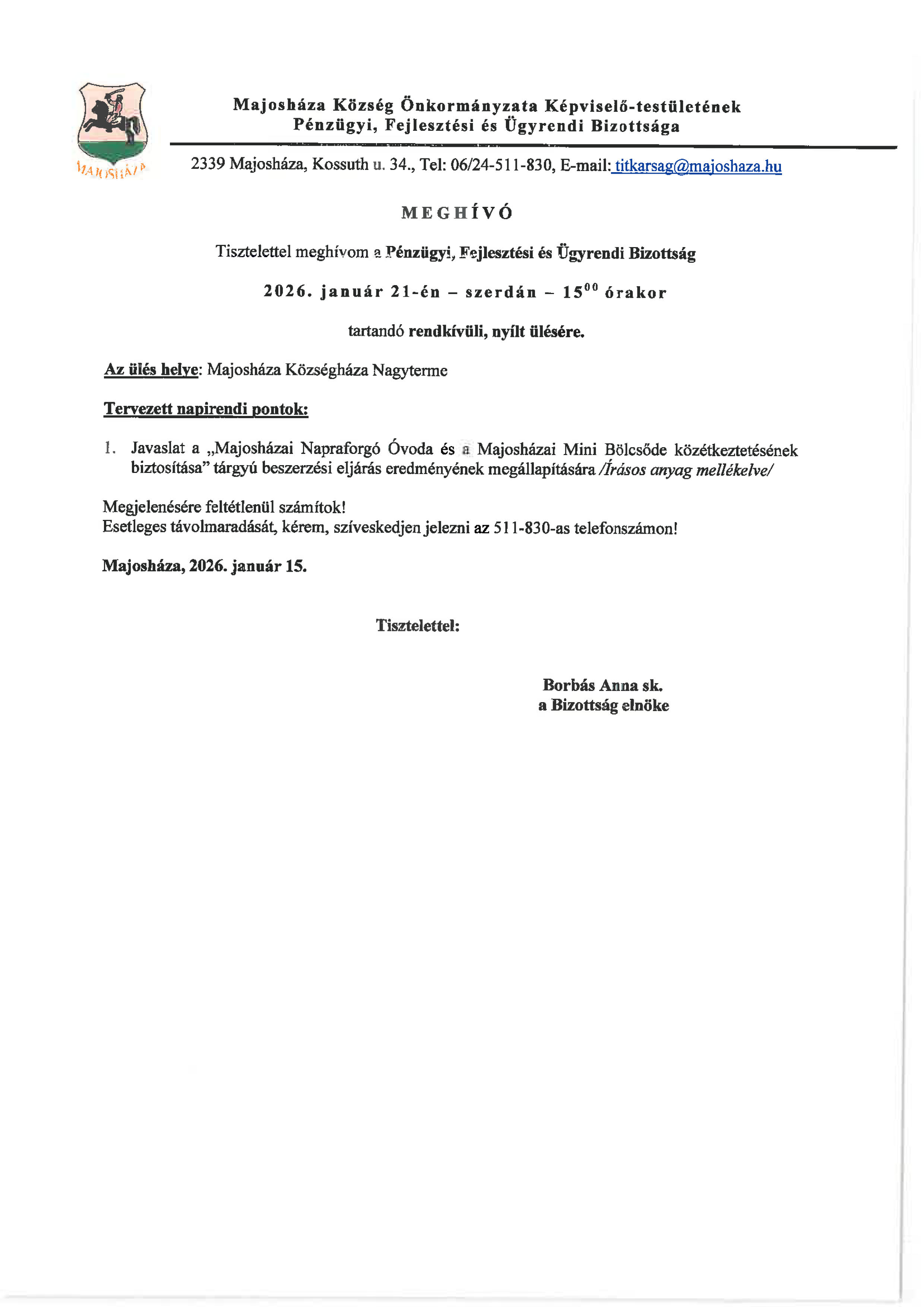 Pénzügyi, Fejlesztési és Ügyrendi Bizottság és Humánpolitikai Bizottsági együttes ülés - 2026.01.21.