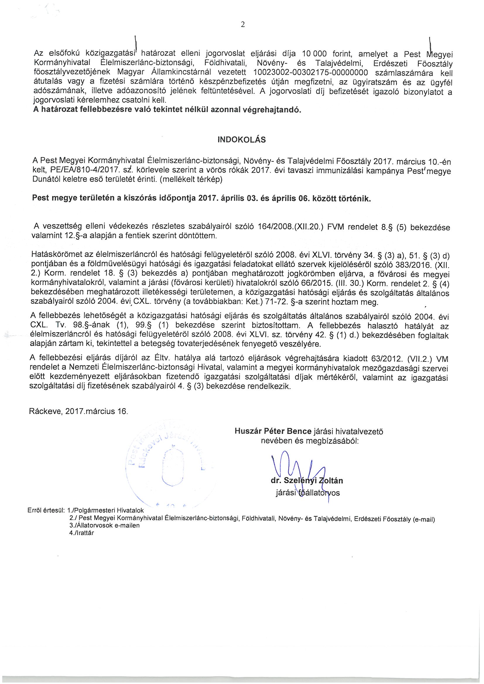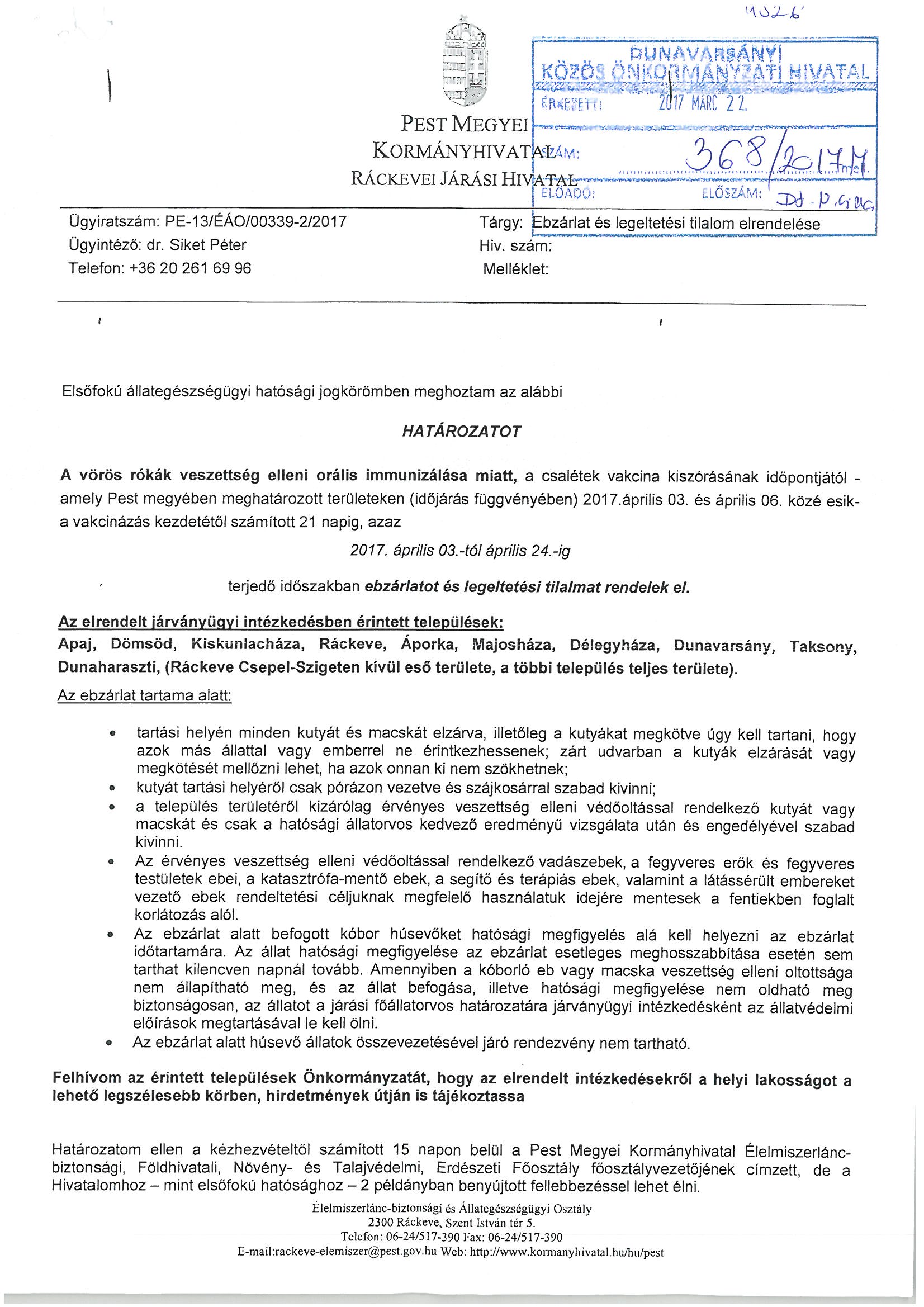 Ebzárlat és legeltetési tilalom - 2017. április 3-24.