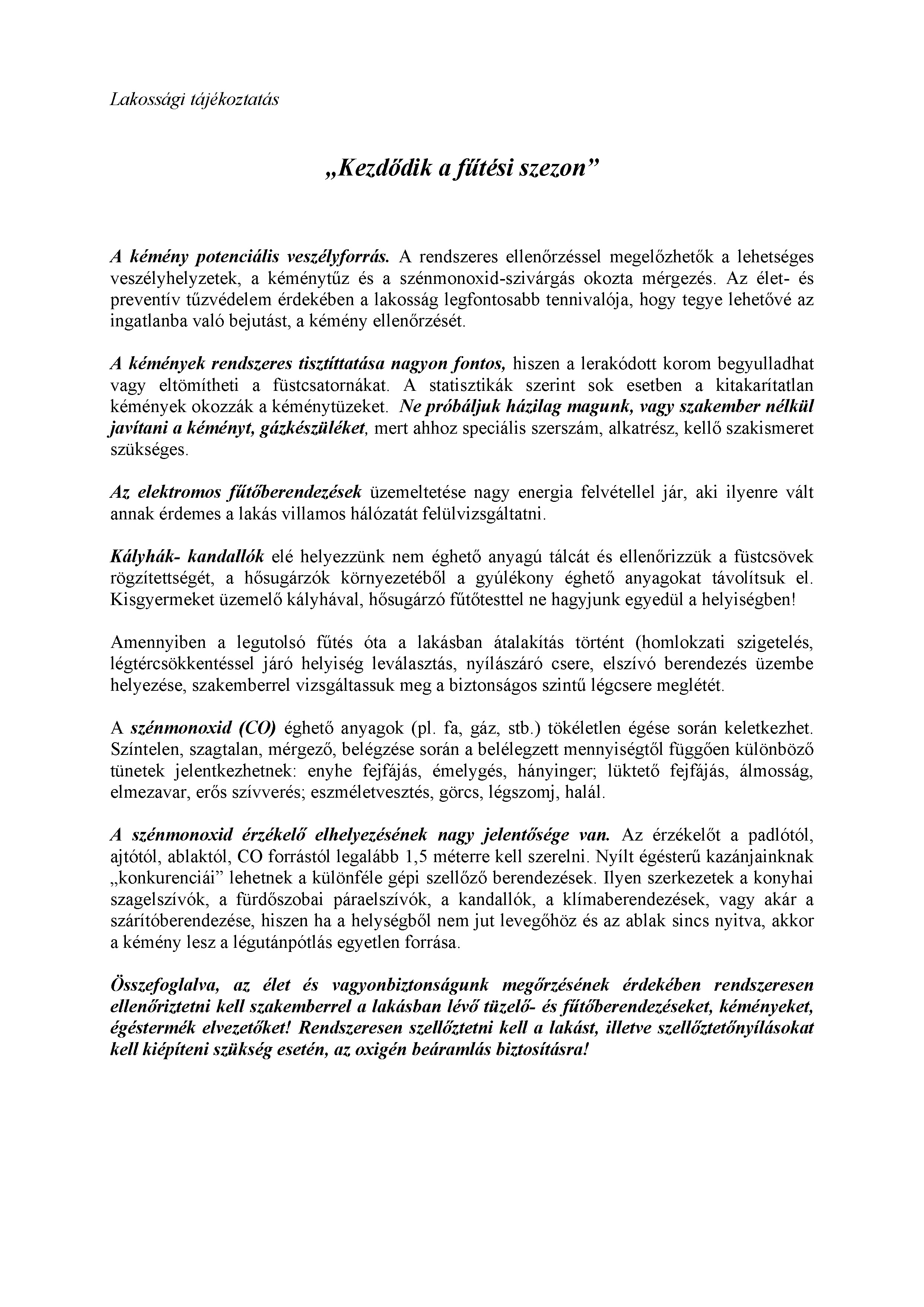 Lakossági tájékoztató - Kezdődik a fűtési szezon