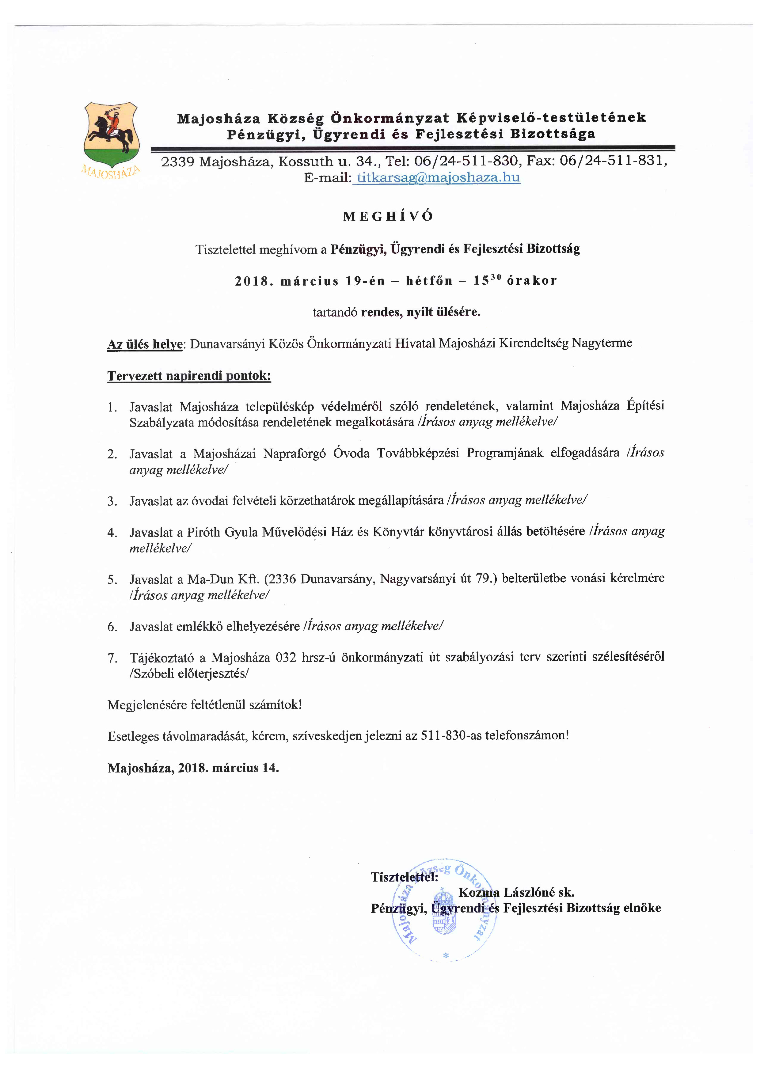 Pénzügyi, Jogi és Ügyrendi Bizottság ülés - március 19.