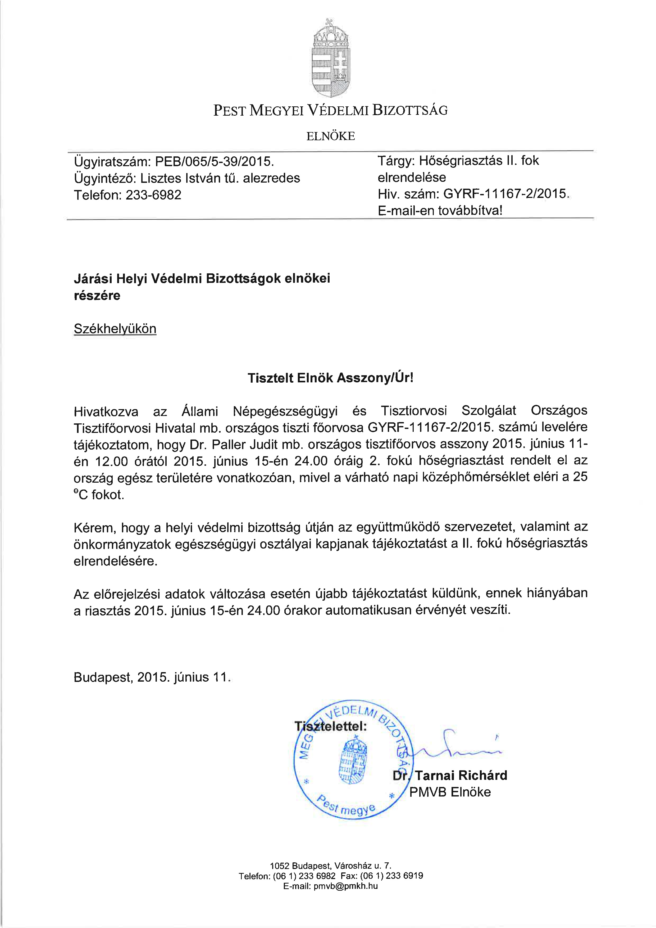 II. fokú hőségriasztás