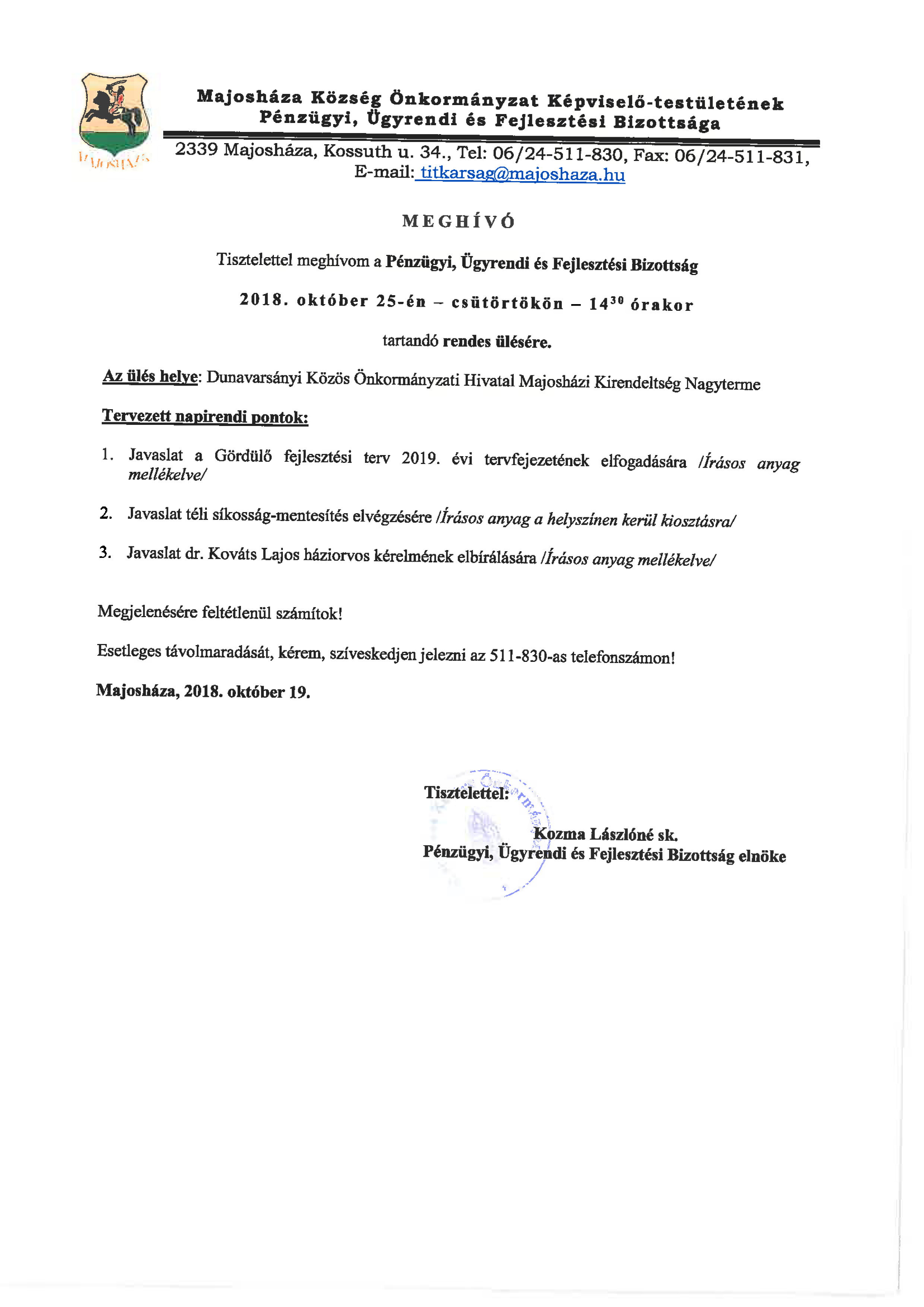 Pénzügyi, Jogi és Ügyrendi Bizottság ülés - október 25.