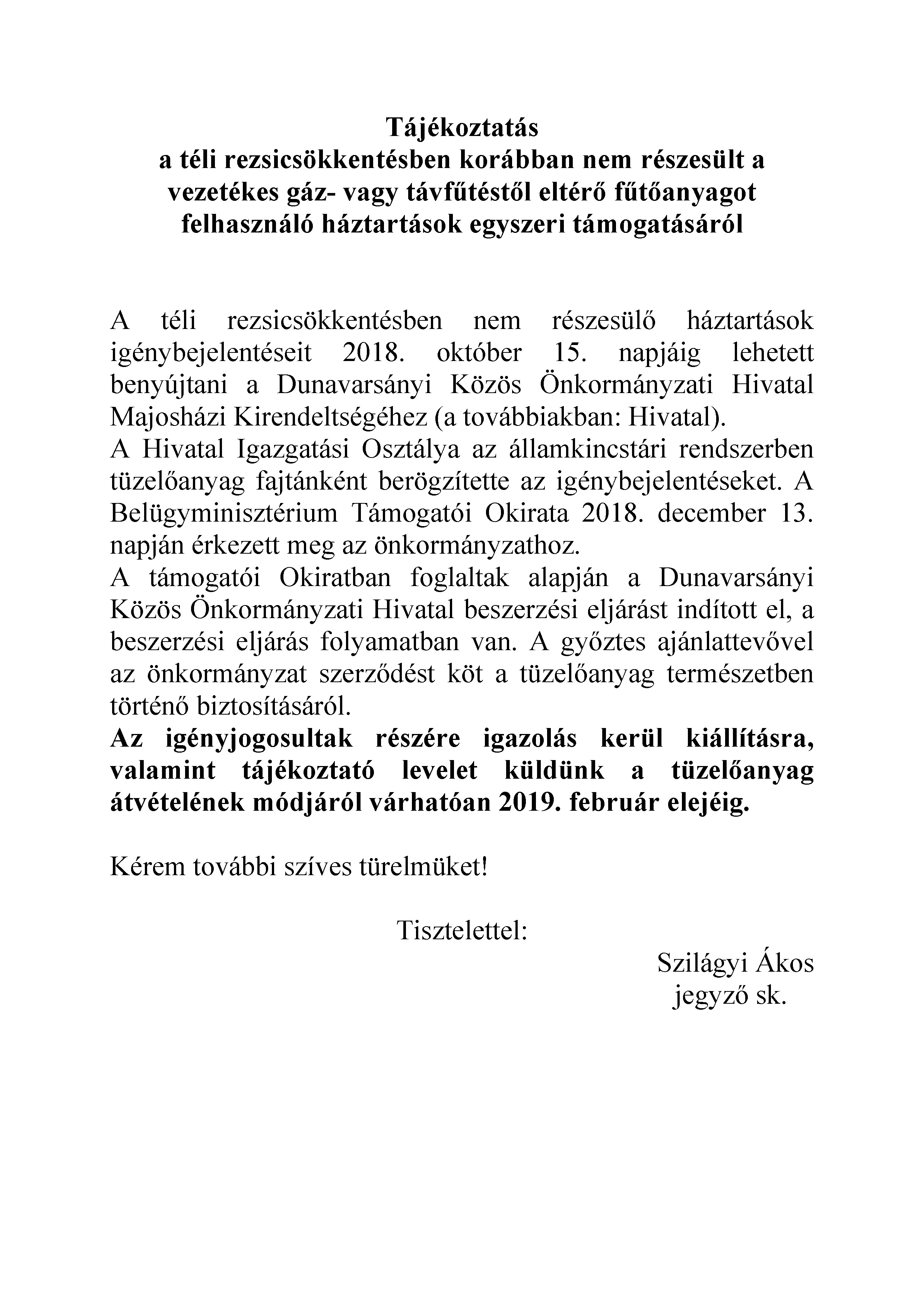 Tájékoztató a téli rezsicsökkentésről