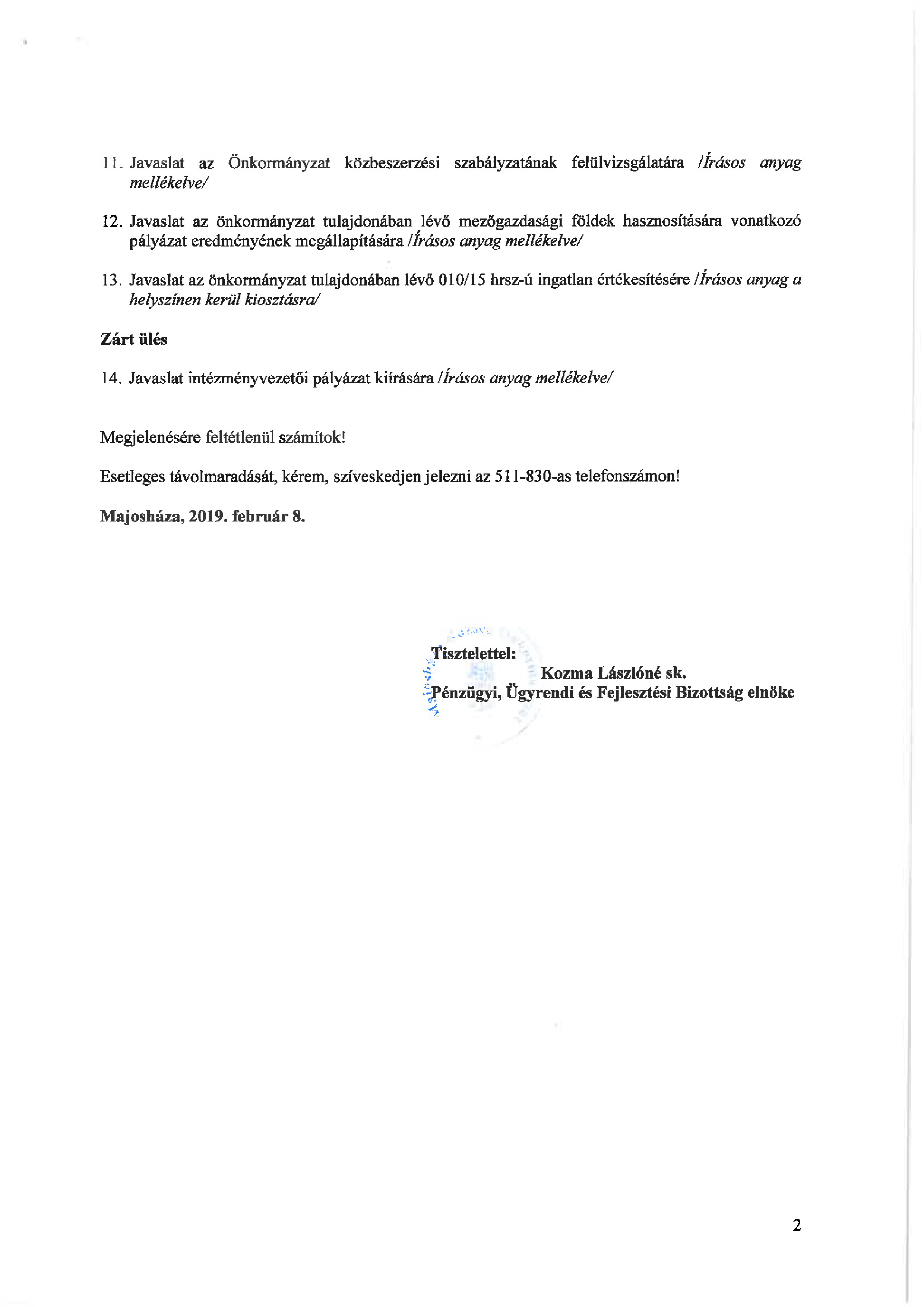 Pénzügyi, Jogi és Ügyrendi Bizottság ülés - február 11.