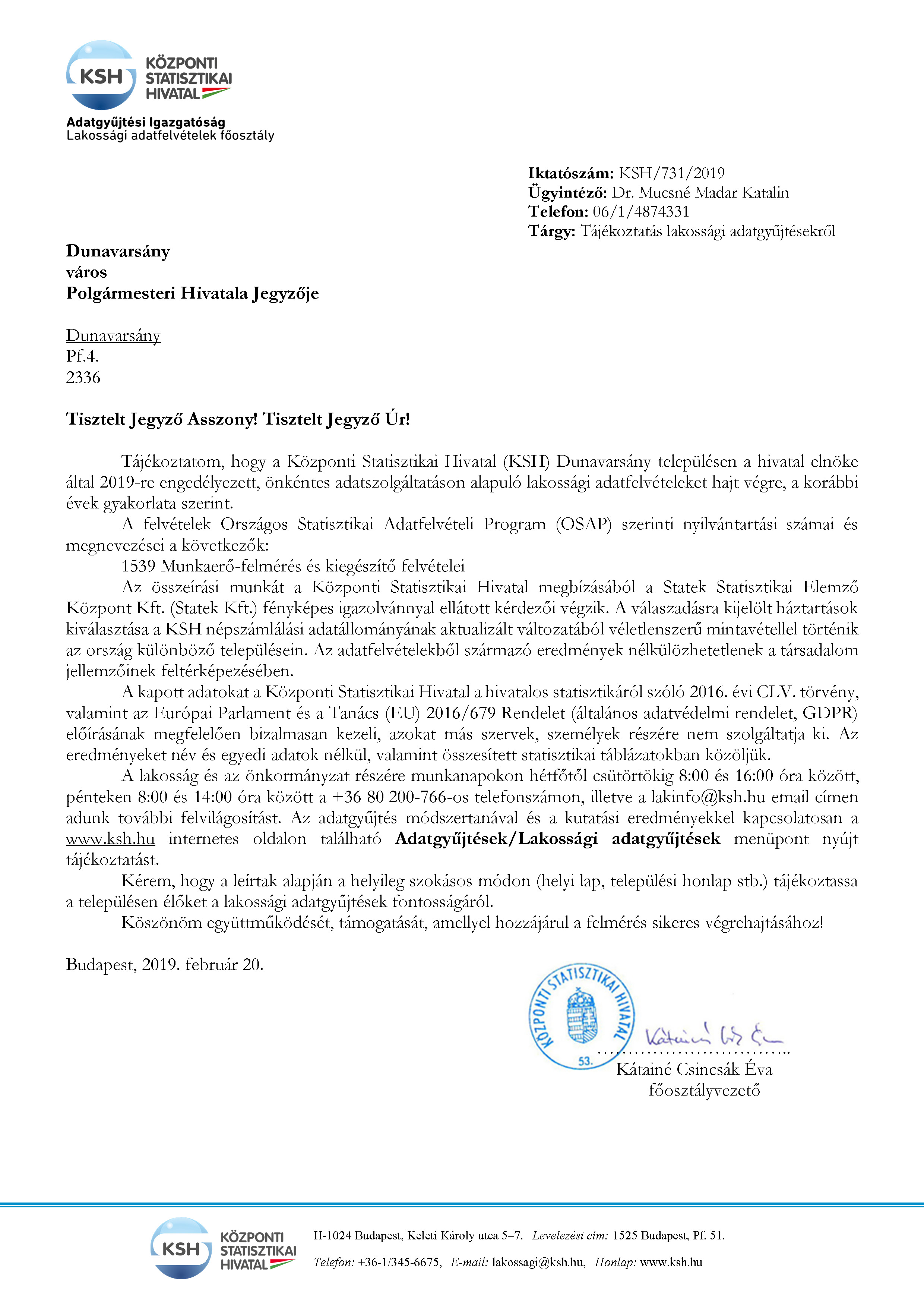 KSH lakossági adatfelvétel 2019