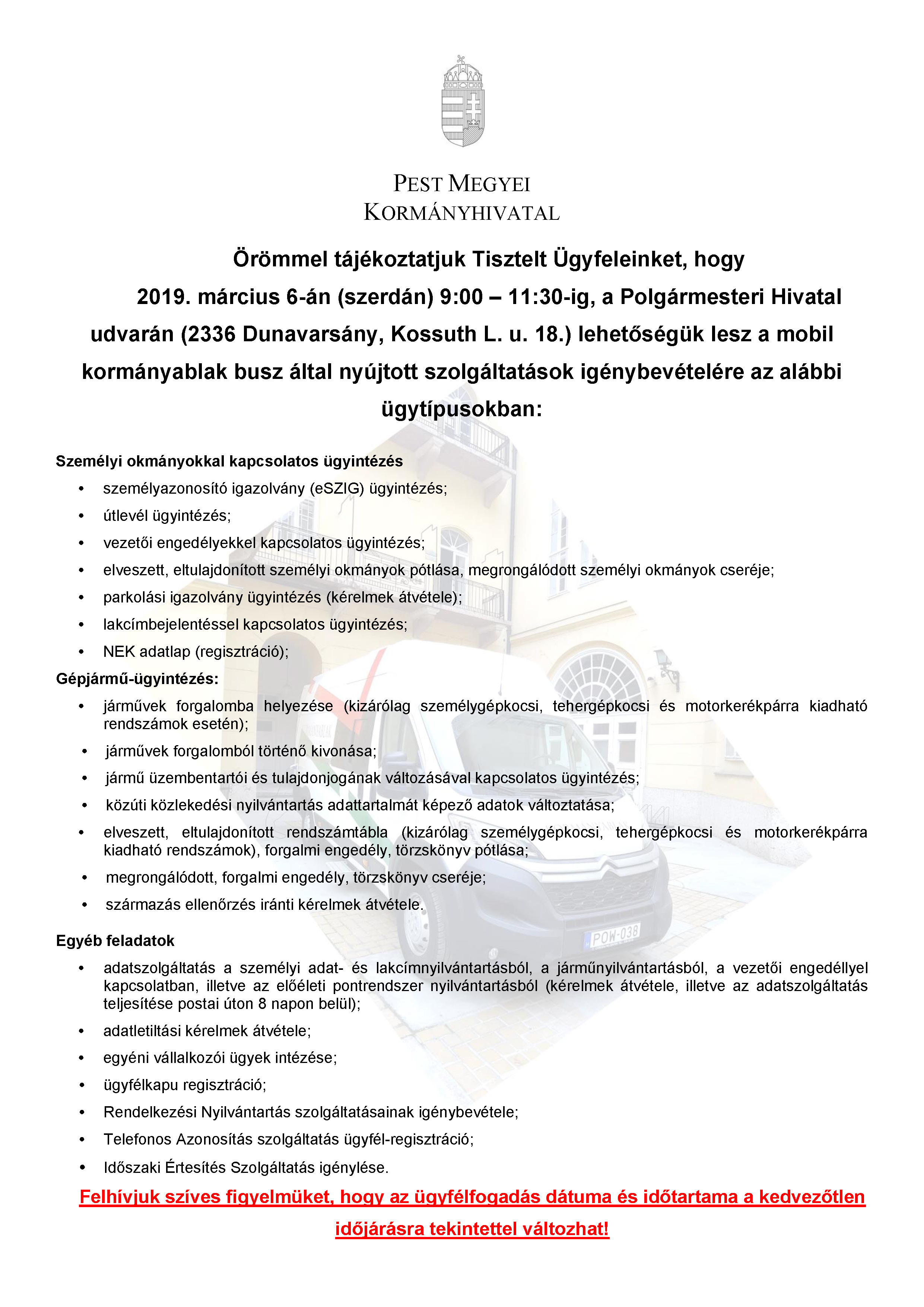Mobil kormányablak busz Dunavarsányban 2019. március 6-án