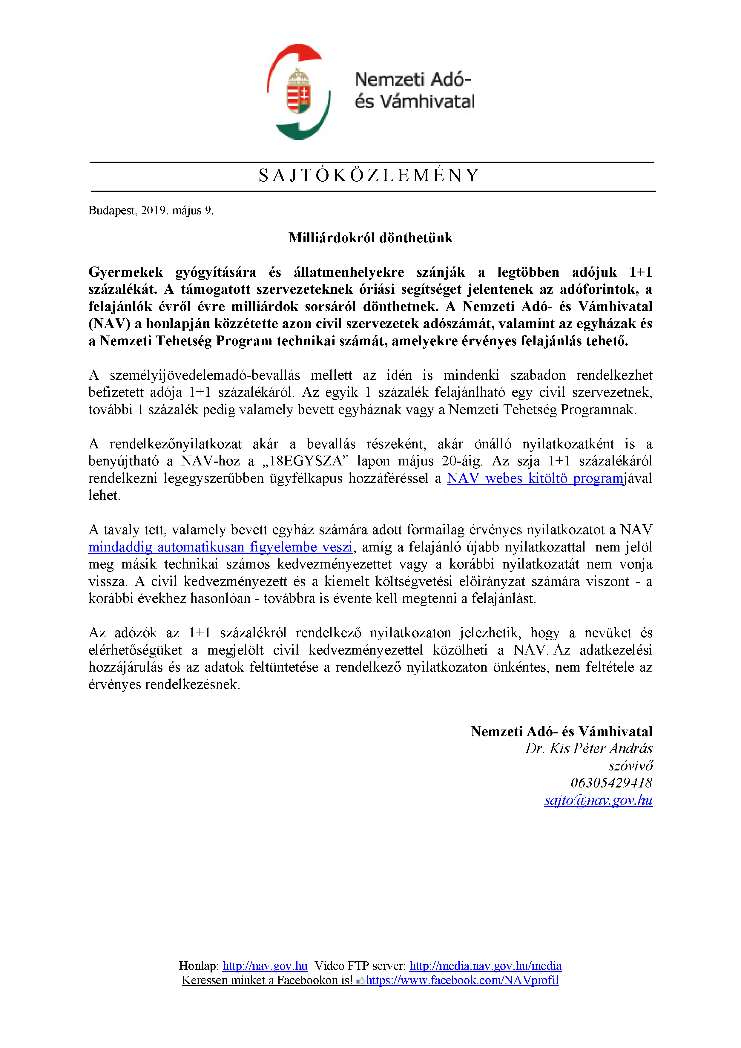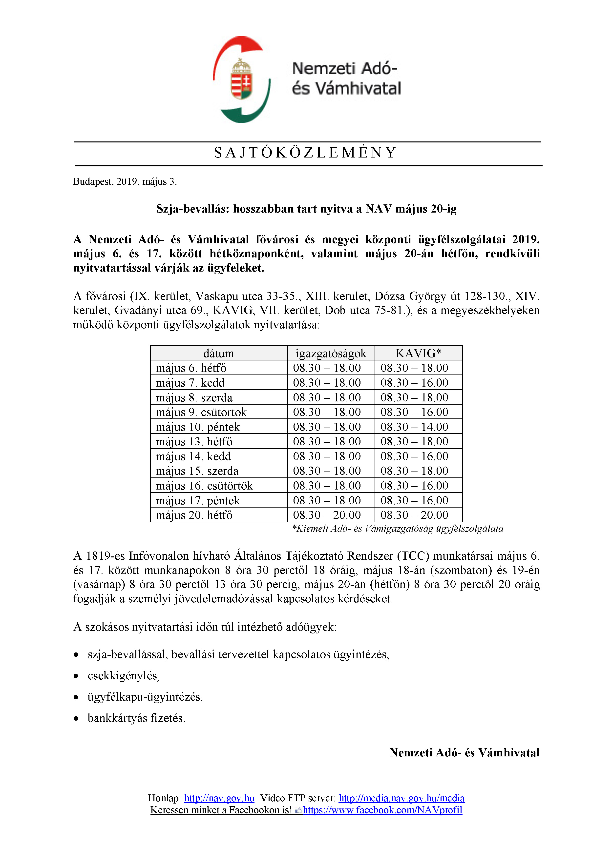 NAV közlemény - Közeleg a május 20.