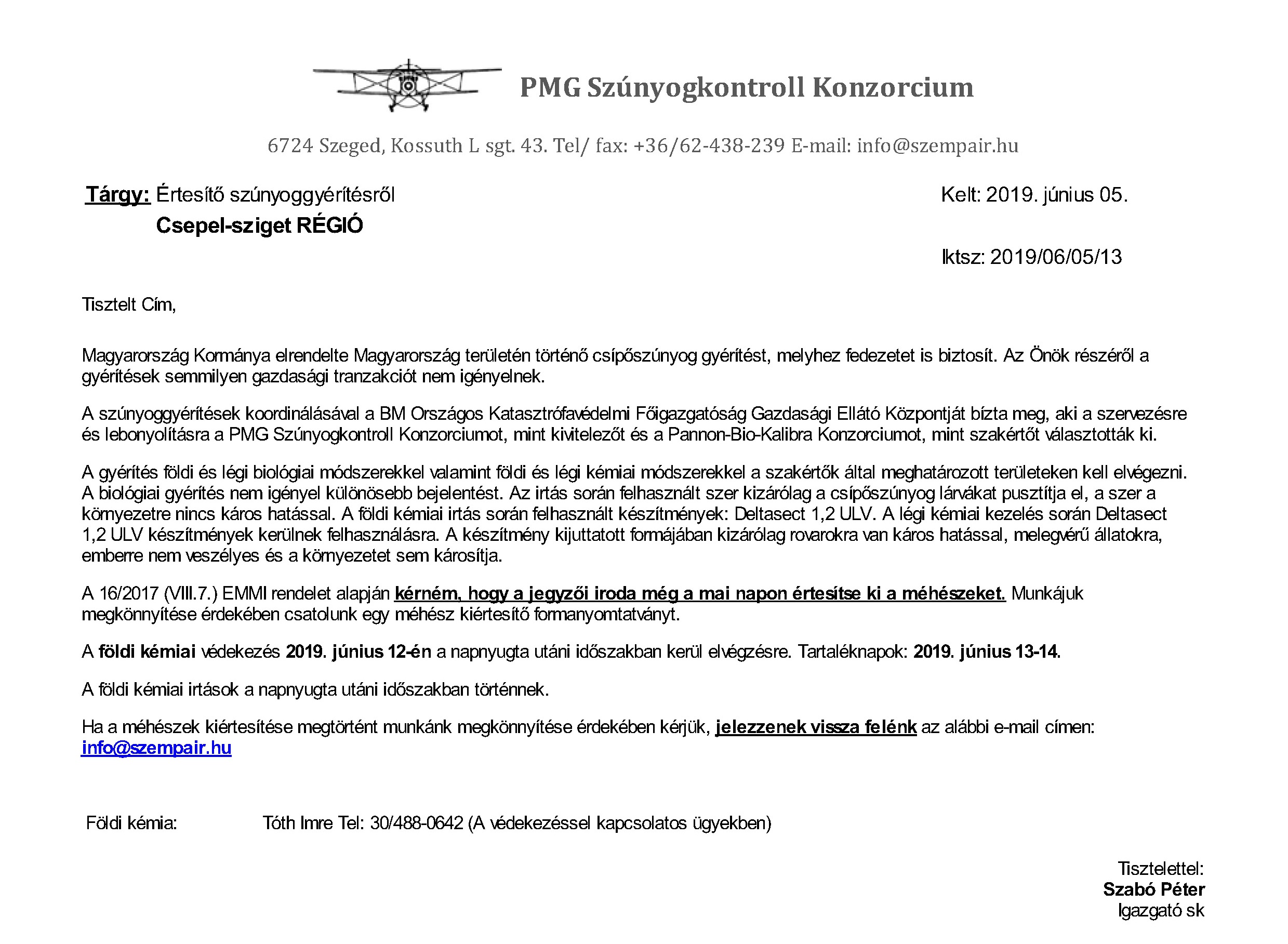 Értesítés földi kémiai szúnyoggyérítésről - június 12.
