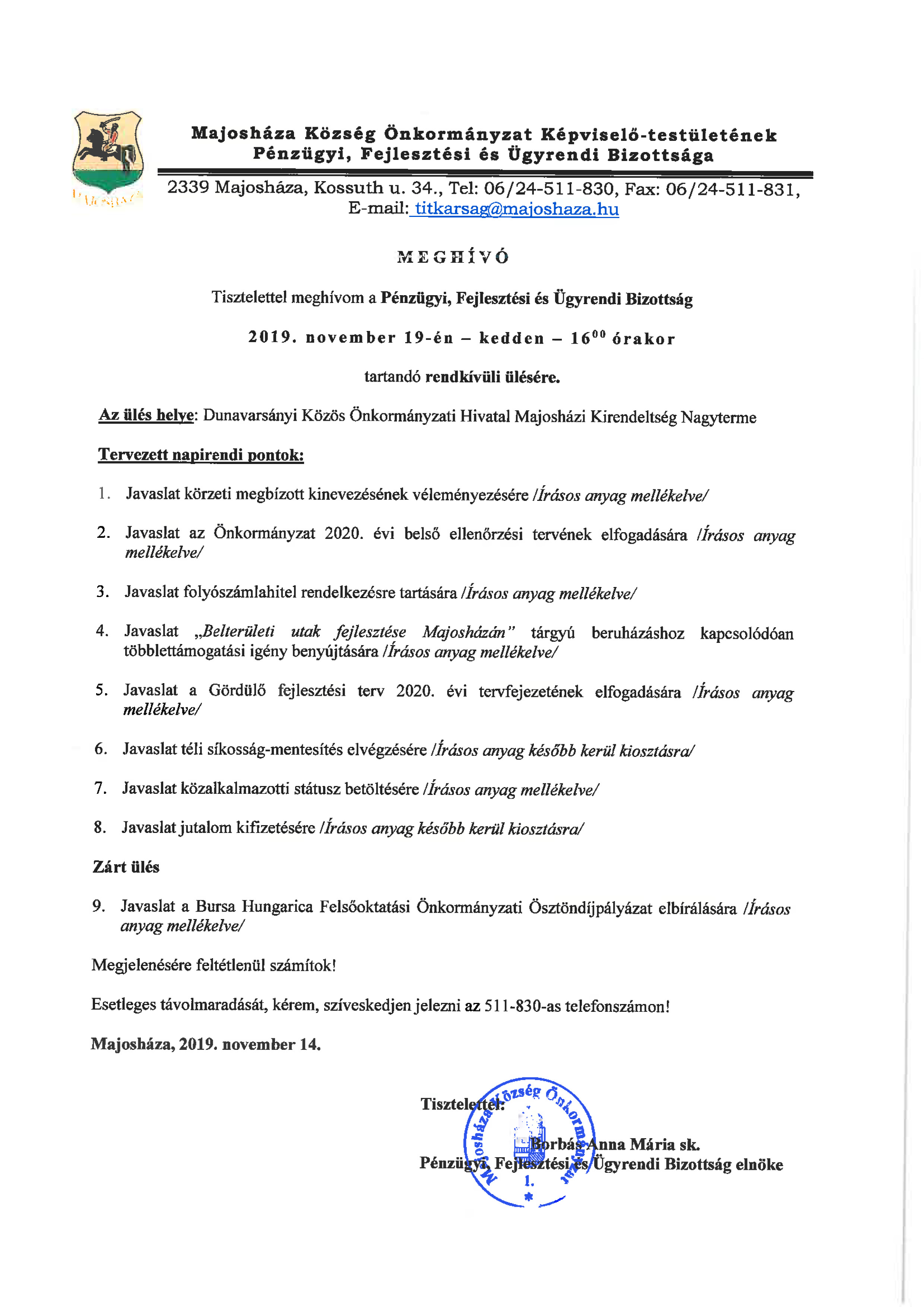 Pénzügyi, Fejlesztési és Ügyrendi Bizottság ülés - 2019. 11. 19.