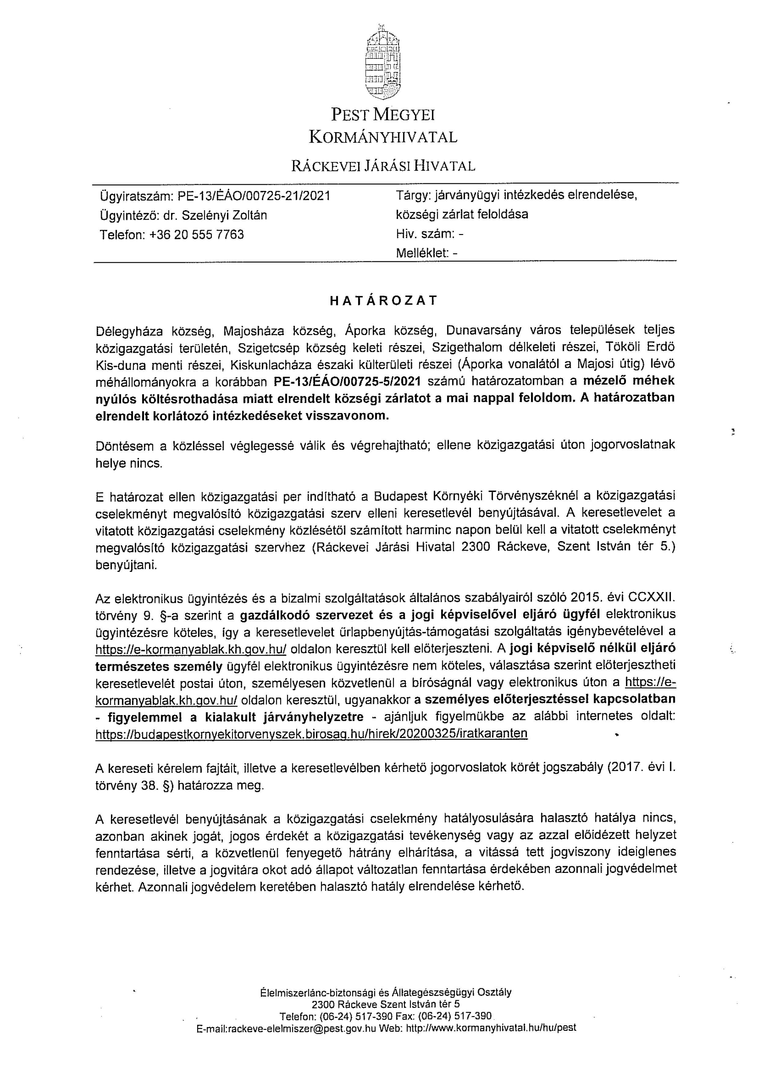 Állategészségügyi községi zárlat feloldása