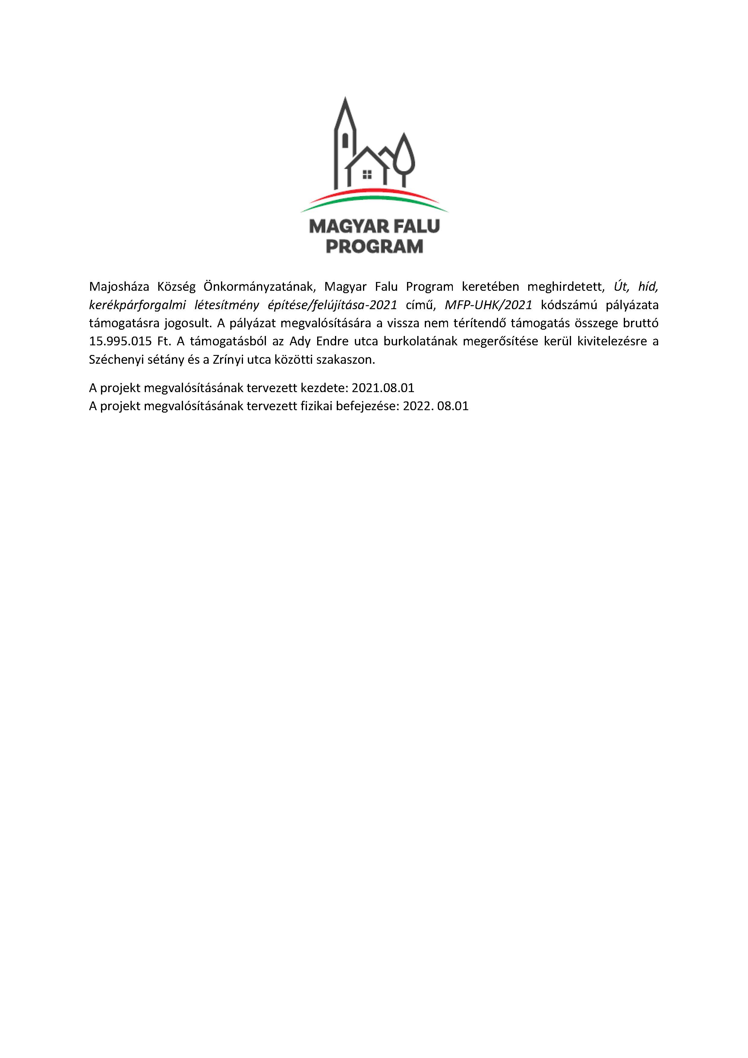 Magyar Falu Program tájékoztató - Út, híd, kerékpárforgalmi létesítmény építése/felújítása-2021