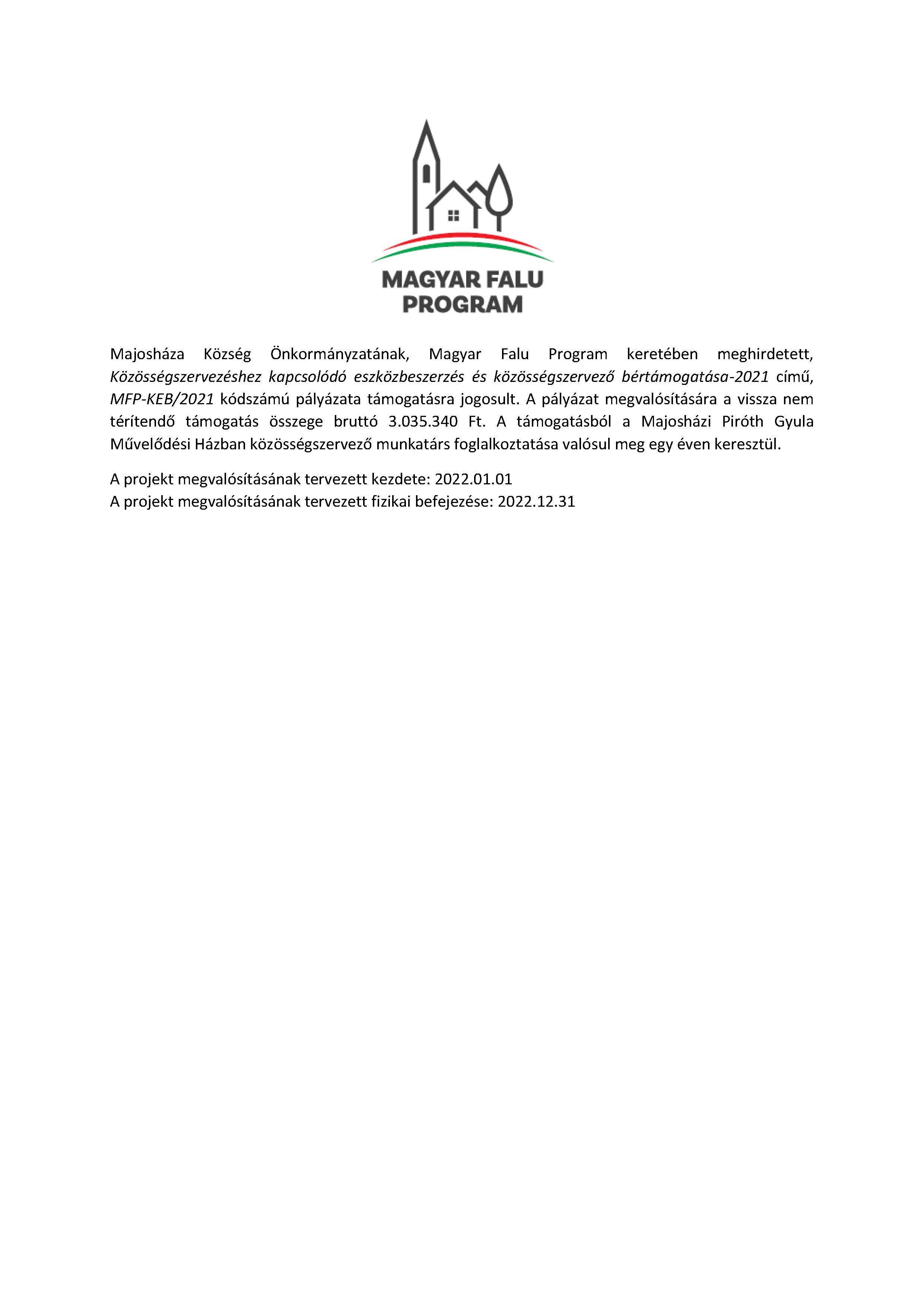 Magyar Falu Program tájékoztató - Közösségszervezéshez kapcsolódó eszközbeszerzés és közösségszervező bértámogatása-2021