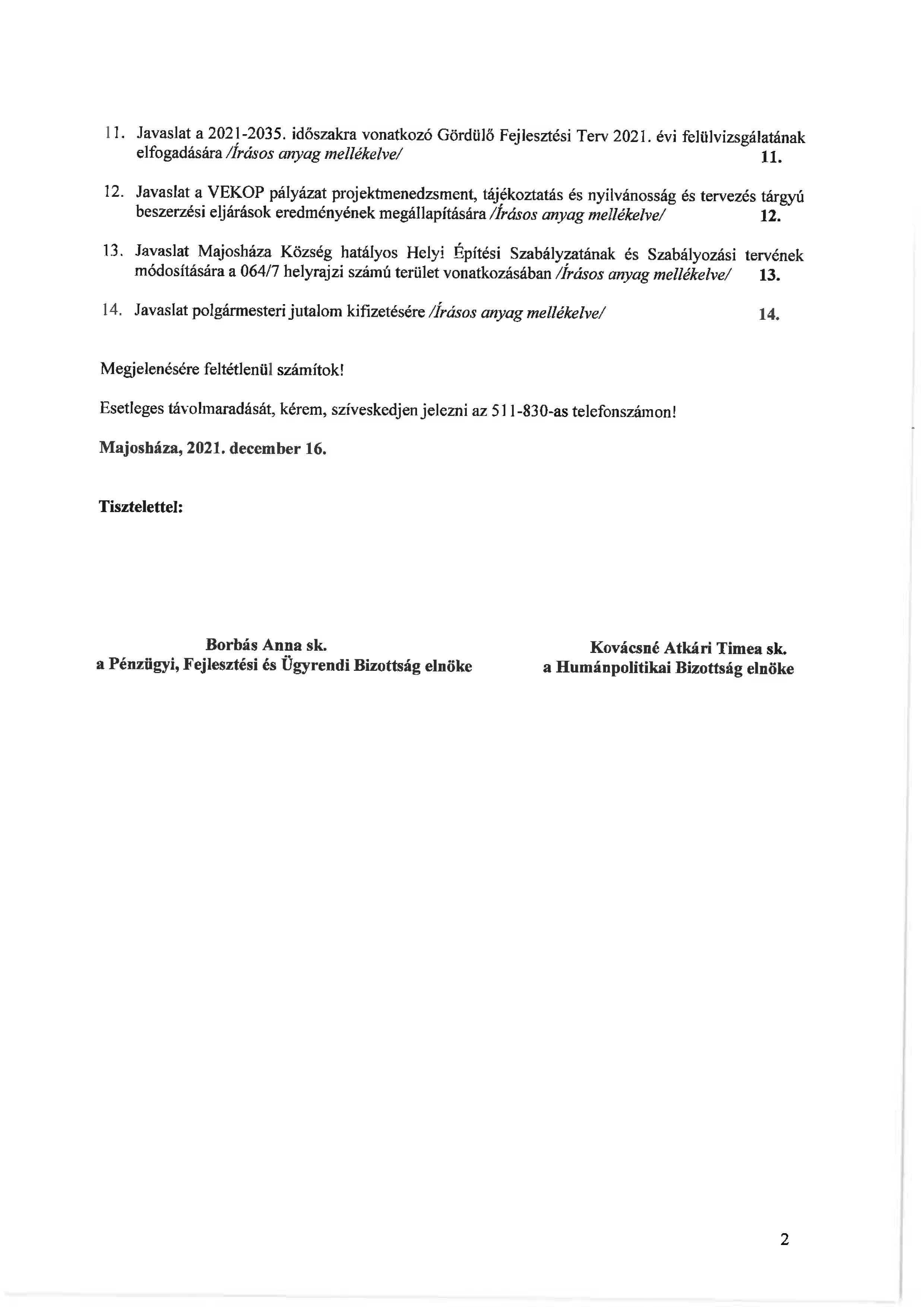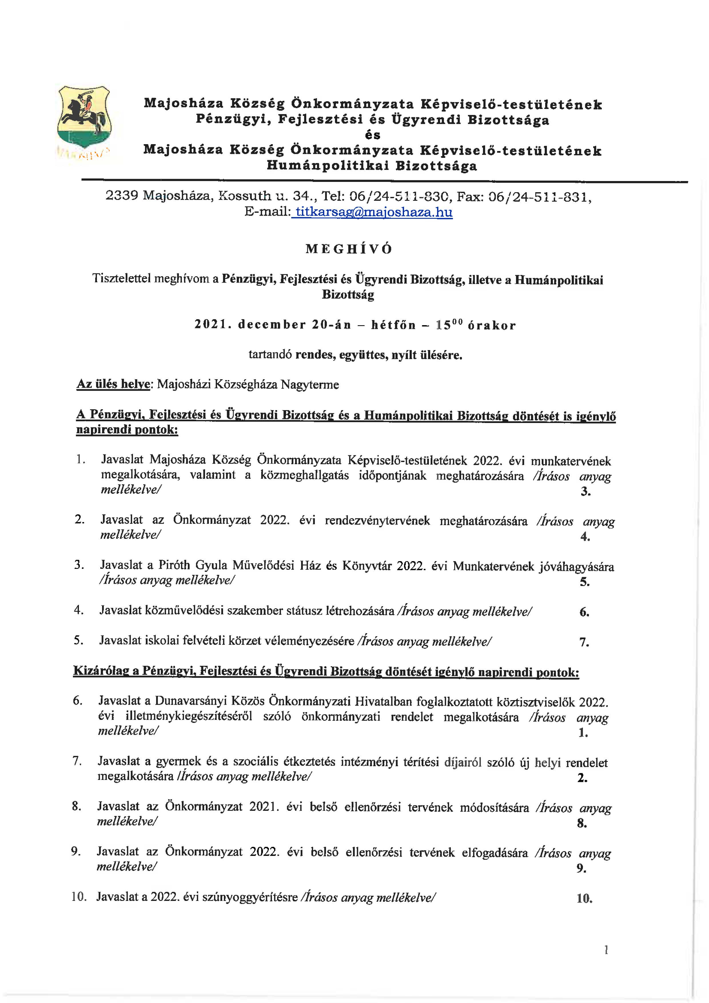 Pénzügyi, Fejlesztési és Ügyrendi Bizottság és Humánpolitikai Bizottsági együttes ülés - 2021.12.20.