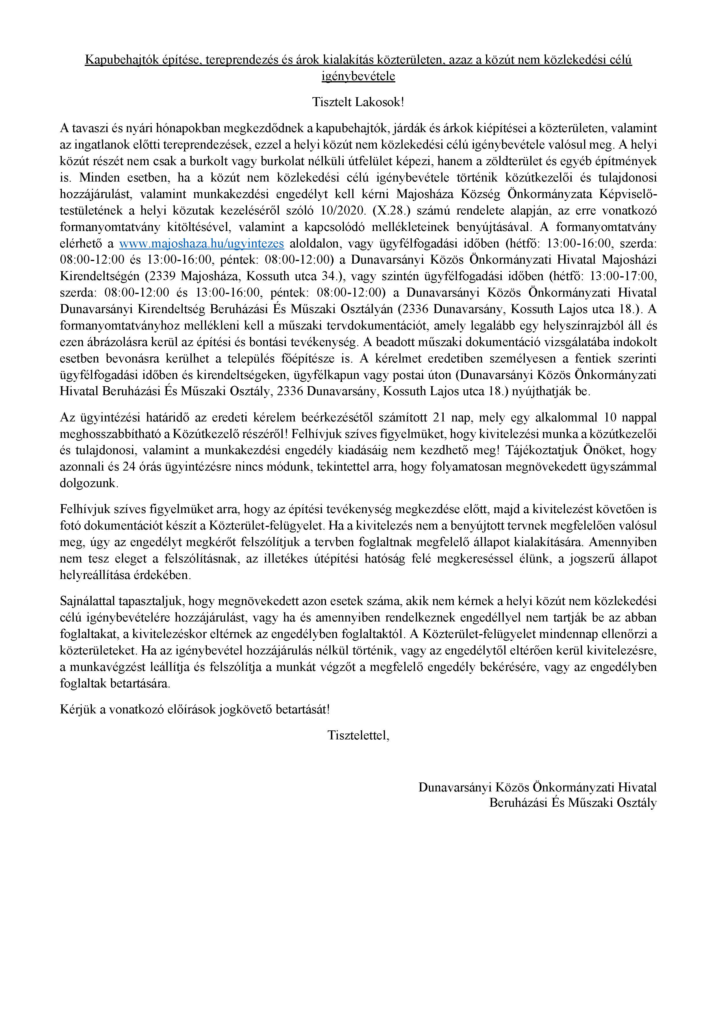 Kapubehajtók építése, tereprendezés és árok kialakítás közterületen, azaz a közút nem közlekedési célú igénybevétele