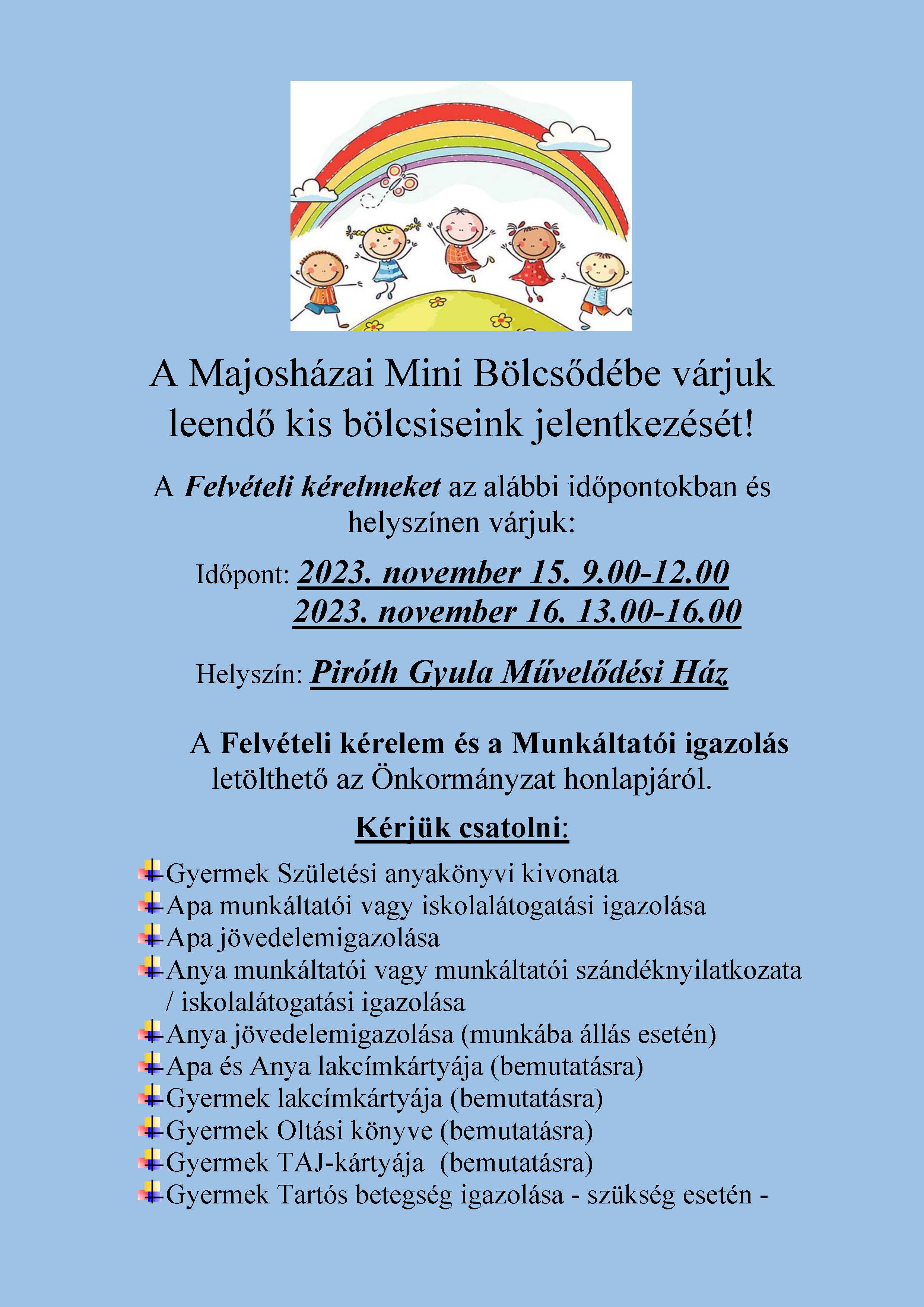 A Majosházai Mini Bölcsődébe várjuk leendő kis bölcsiseink jelentkezését! Felvételi kérelem Munkáltatói igazolás