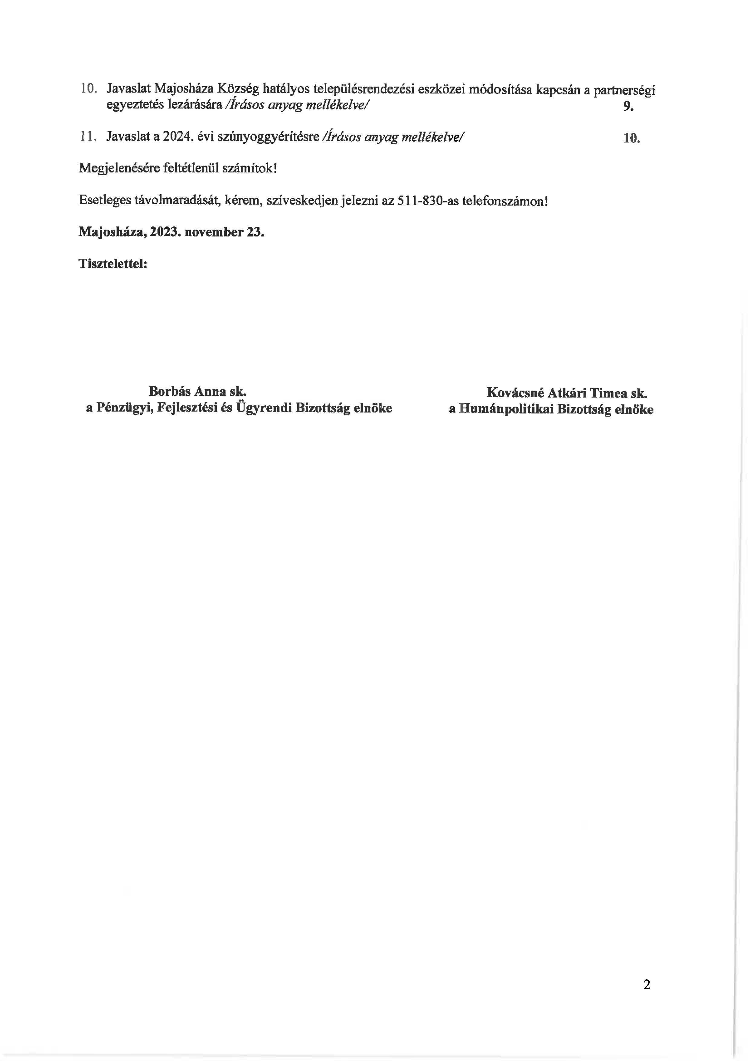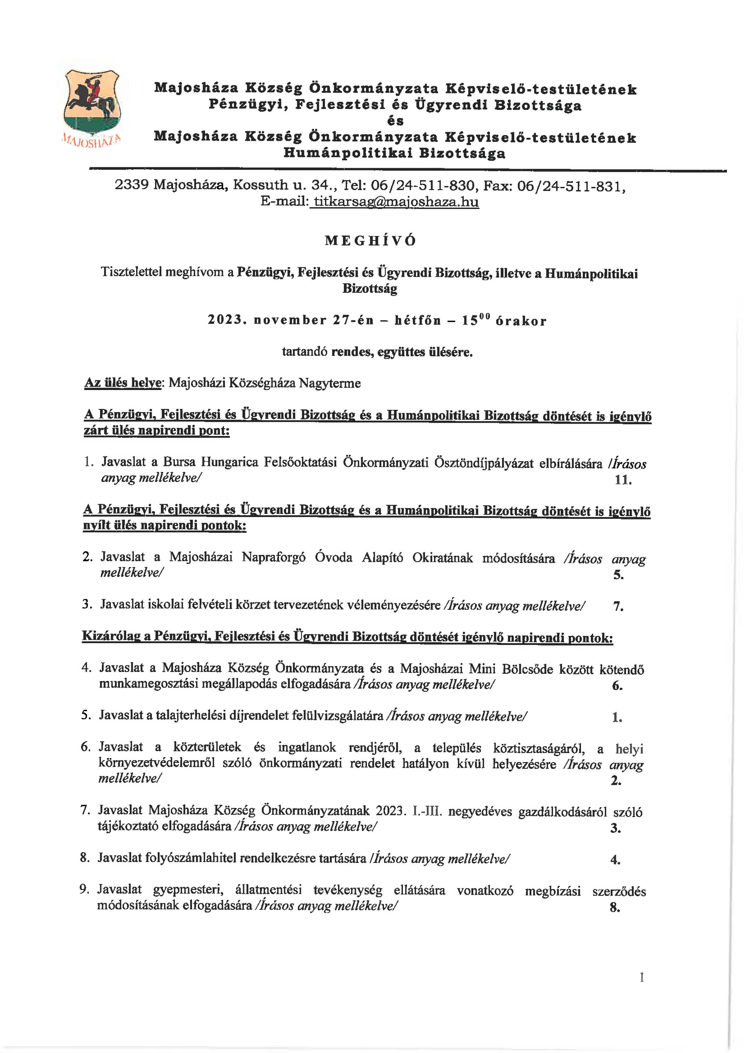 Pénzügyi, Fejlesztési és Ügyrendi Bizottság és Humánpolitikai Bizottsági együttes ülés - 2023.11.27.