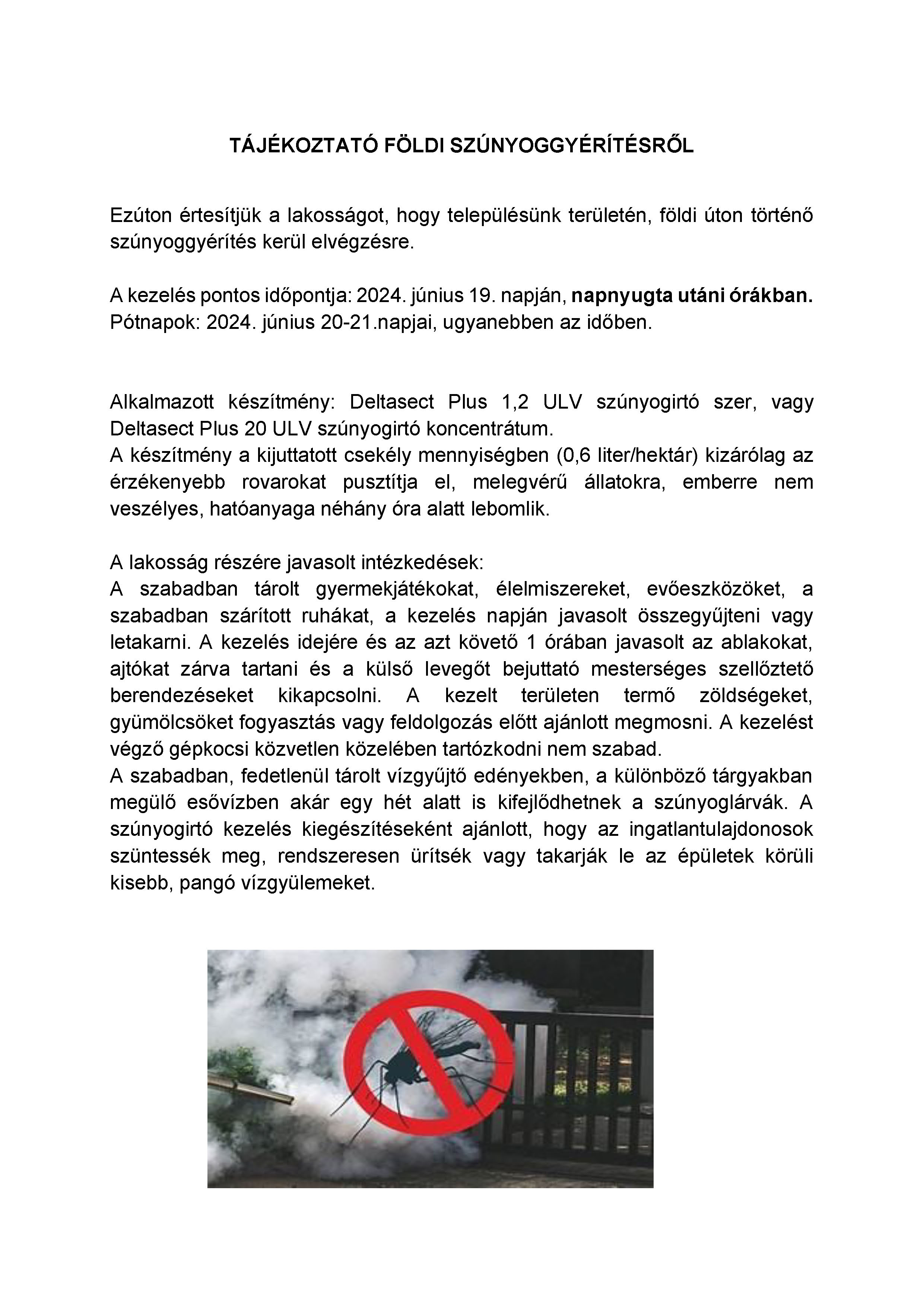 Tájékoztató földi szúnyoggyérítésről - 2024.06.19.