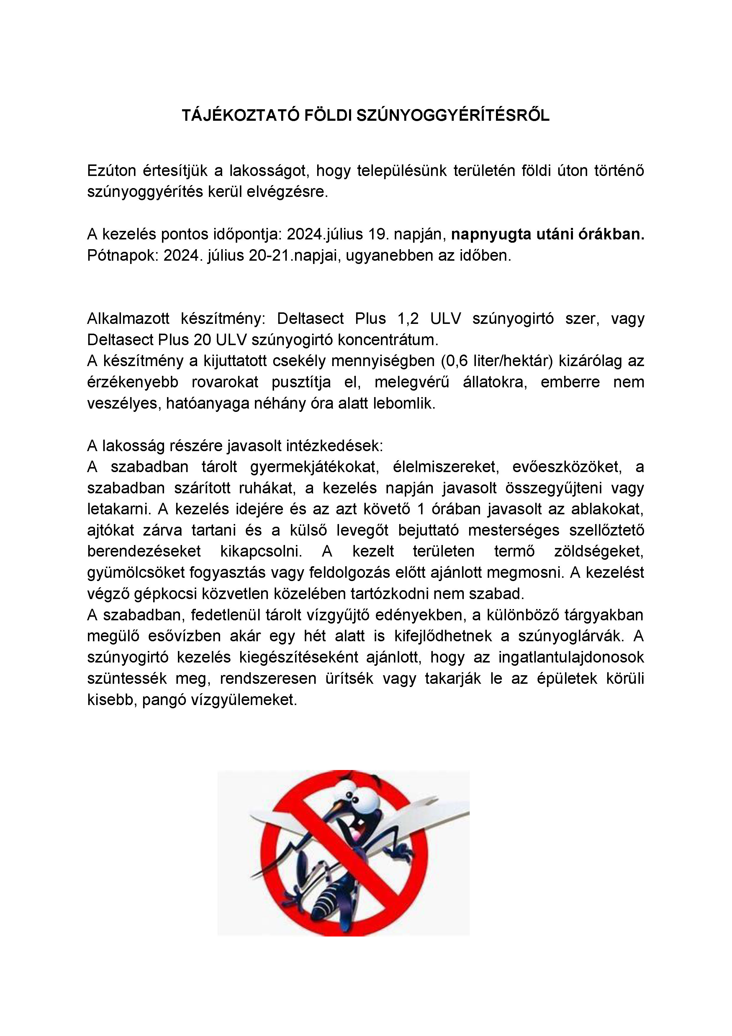 Tájékoztató földi szúnyoggyérítésről - 2024.07.19.