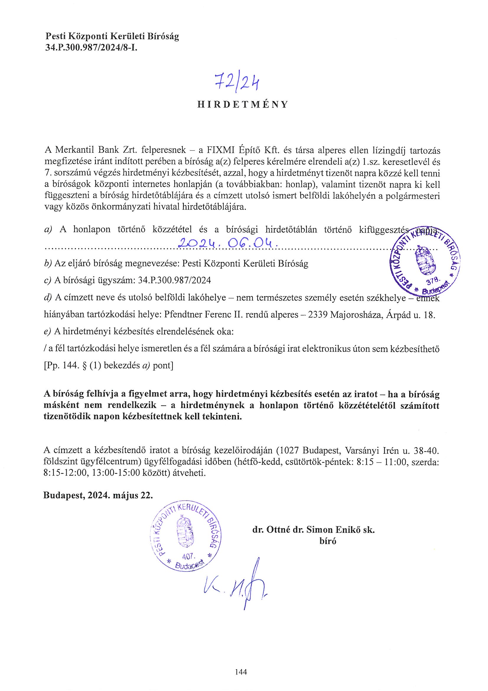 Hétfő: 13.00-17.00