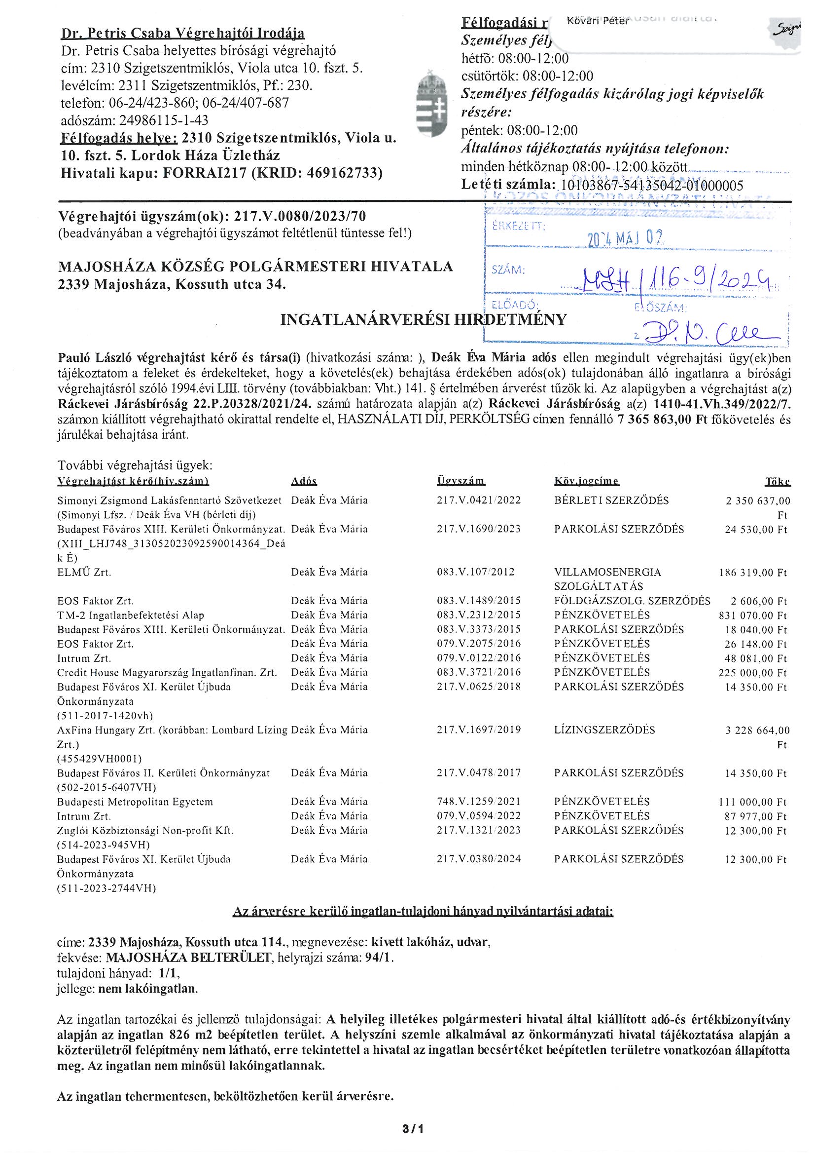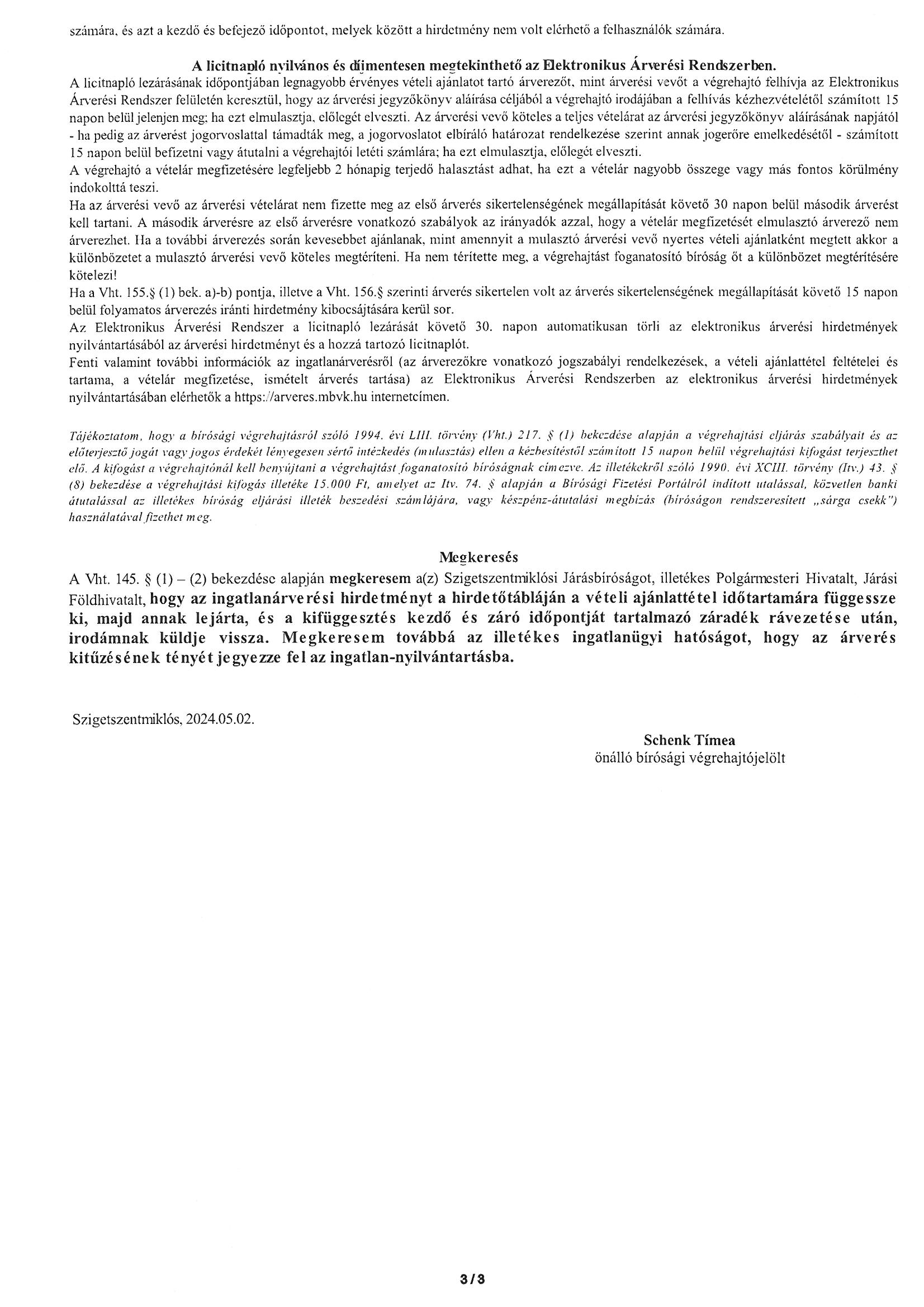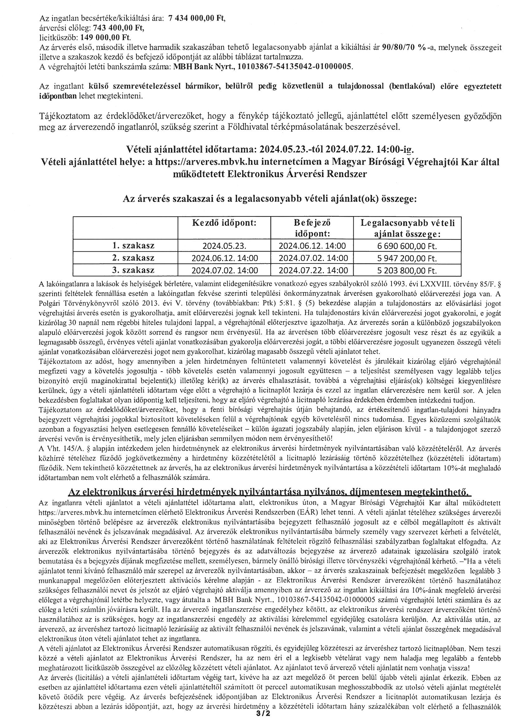 Ingatlanárverési hirdetmény