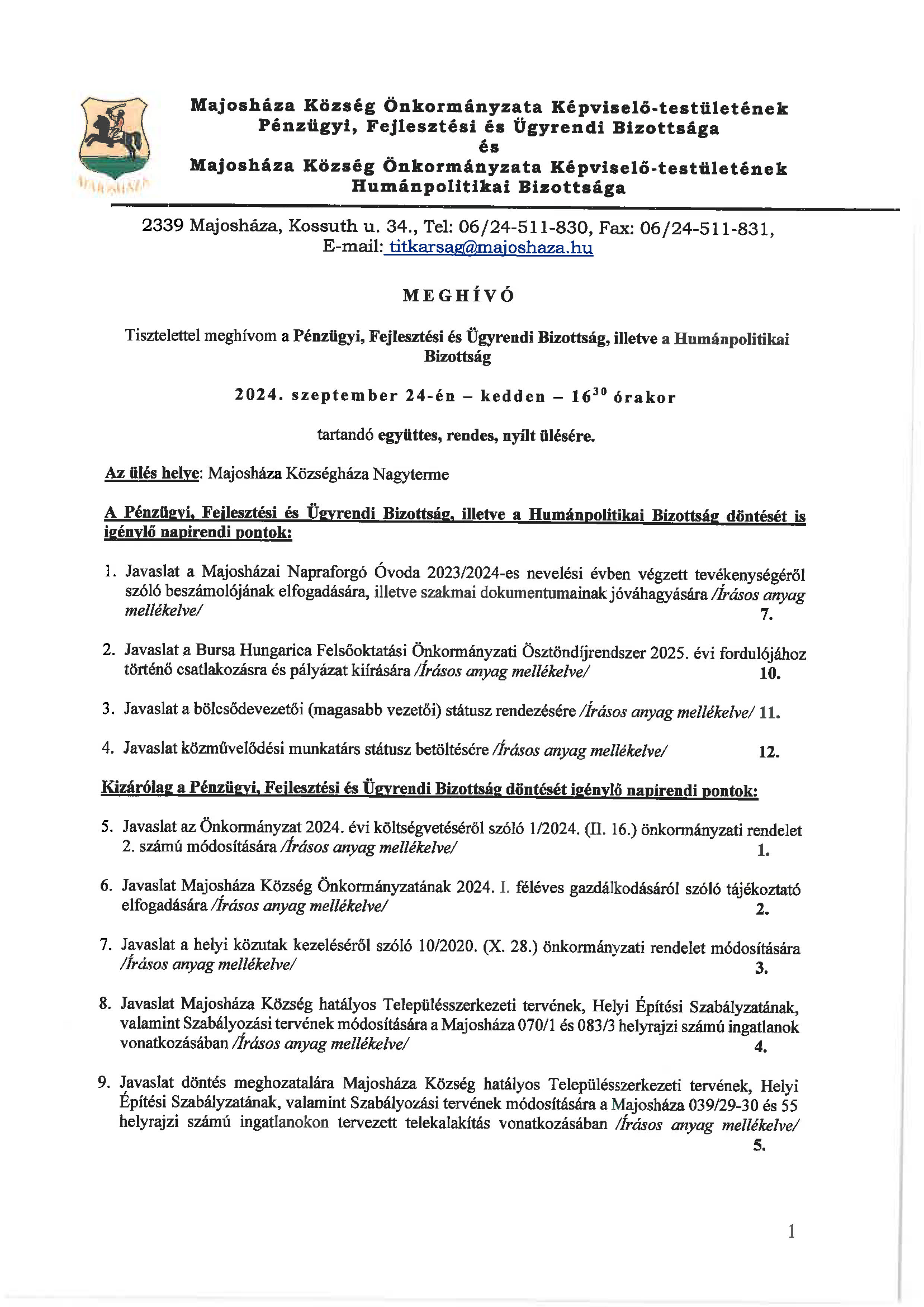 Pénzügyi, Fejlesztési és Ügyrendi Bizottság és Humánpolitikai Bizottsági együttes ülés - 2024.09.24.